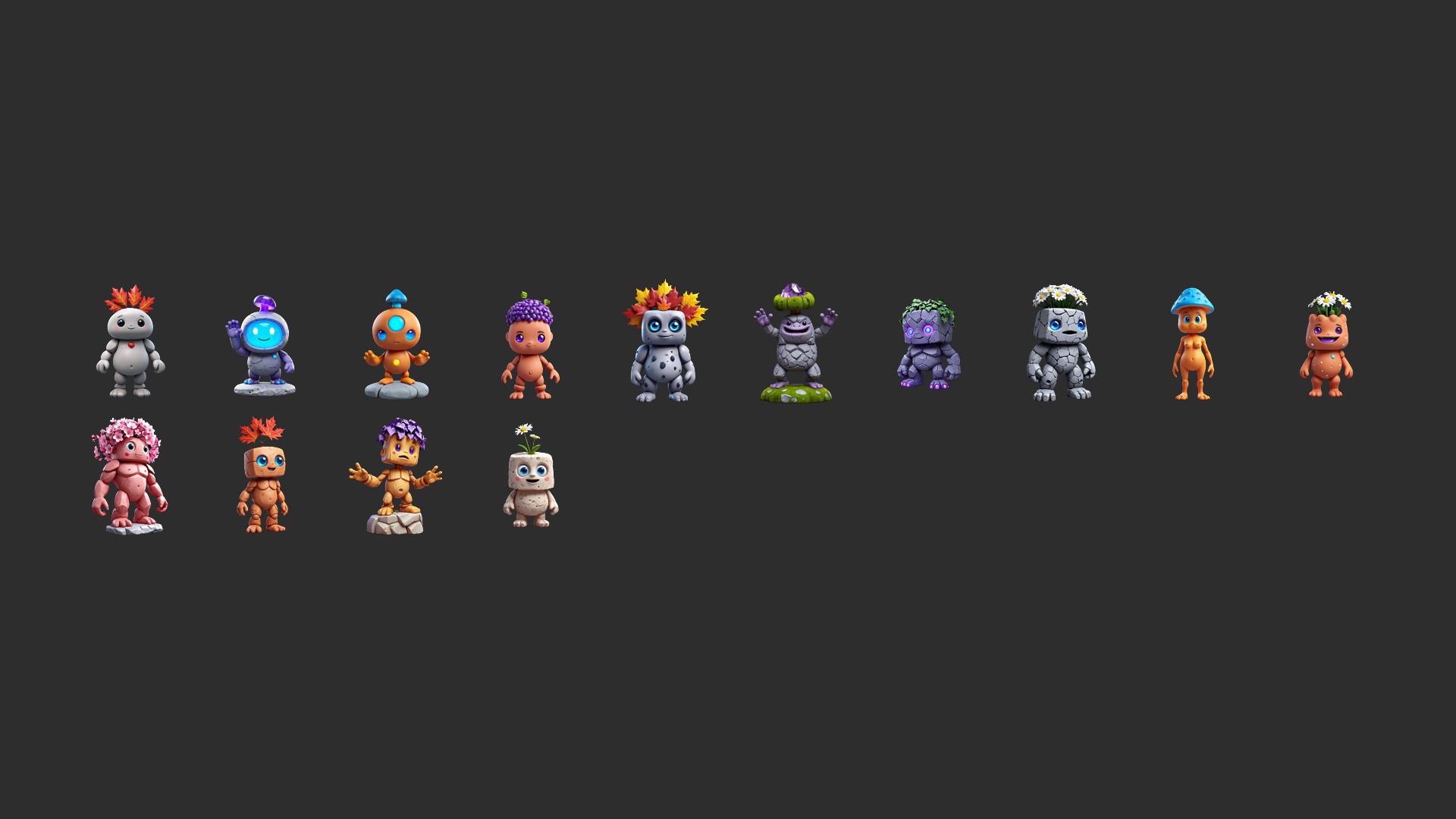 - 🟢 02_Shapes_Round: Cute, spherical, and chubby woodland spirits.